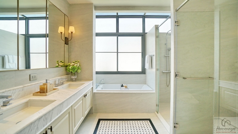 ขณะที่ห้องน้ำในตัวตกแต่งมาในโทนสีอ่อนสะอาดตา ฟังก์ชันจะคล้าย ๆ กับของ Master Bedroom แยกส่วนแห้ง-ส่วนเปียกด้วย Shower Screen ฟังก์ชันครบทั้งโซนอ่างอาบน้ำแบบ Free Standing, อ่างล้างหน้าทรงเหลี่ยมมีตู้เก็บของที่ด้านล่าง, กระจกเงาบานใหญ่พิเศษ, มุมโถสุขภัณฑ์อัตโนมัติ, ราวแขวนผ้าเช็ดตัว, มุมอาบน้ำ และช่องแสงกระจกฝ้าขนาดใหญ่ Oversize พร้อม Sky Light