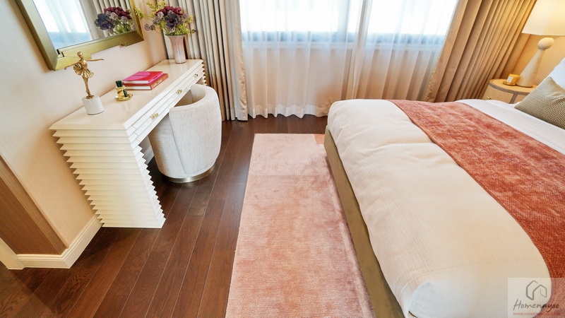 ขณะที่ฝั่งปลายเตียงบ้านตัวอย่างจัดเป็นมุมโต๊ะเครื่องแป้งขนาดมาตรฐาน