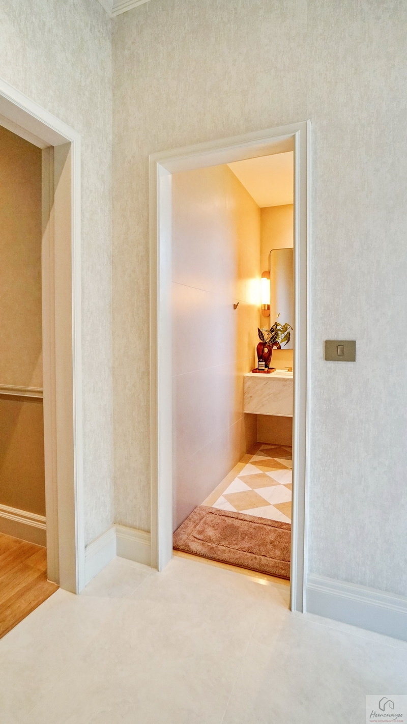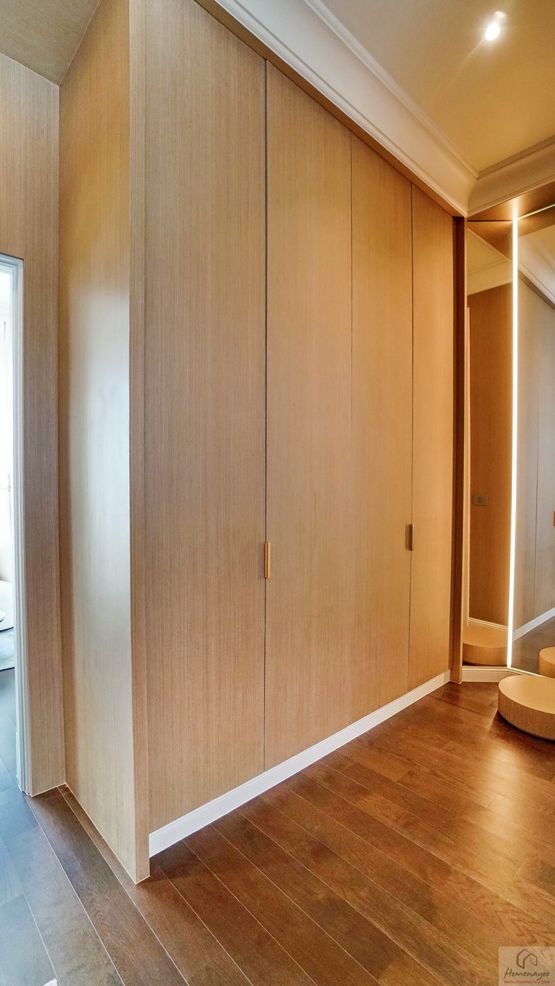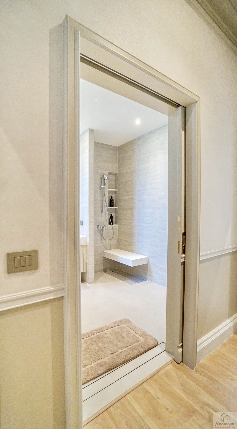 หน้าห้องน้ำชิดผนังทางซ้าย Built-in เป็นตู้เสื้อผ้าทรงสูงจรดเพดาน