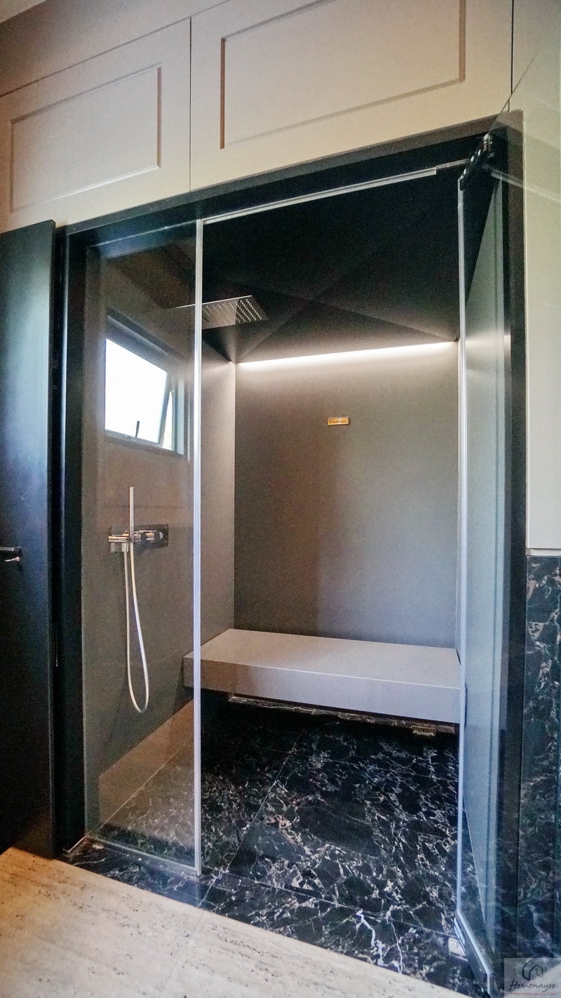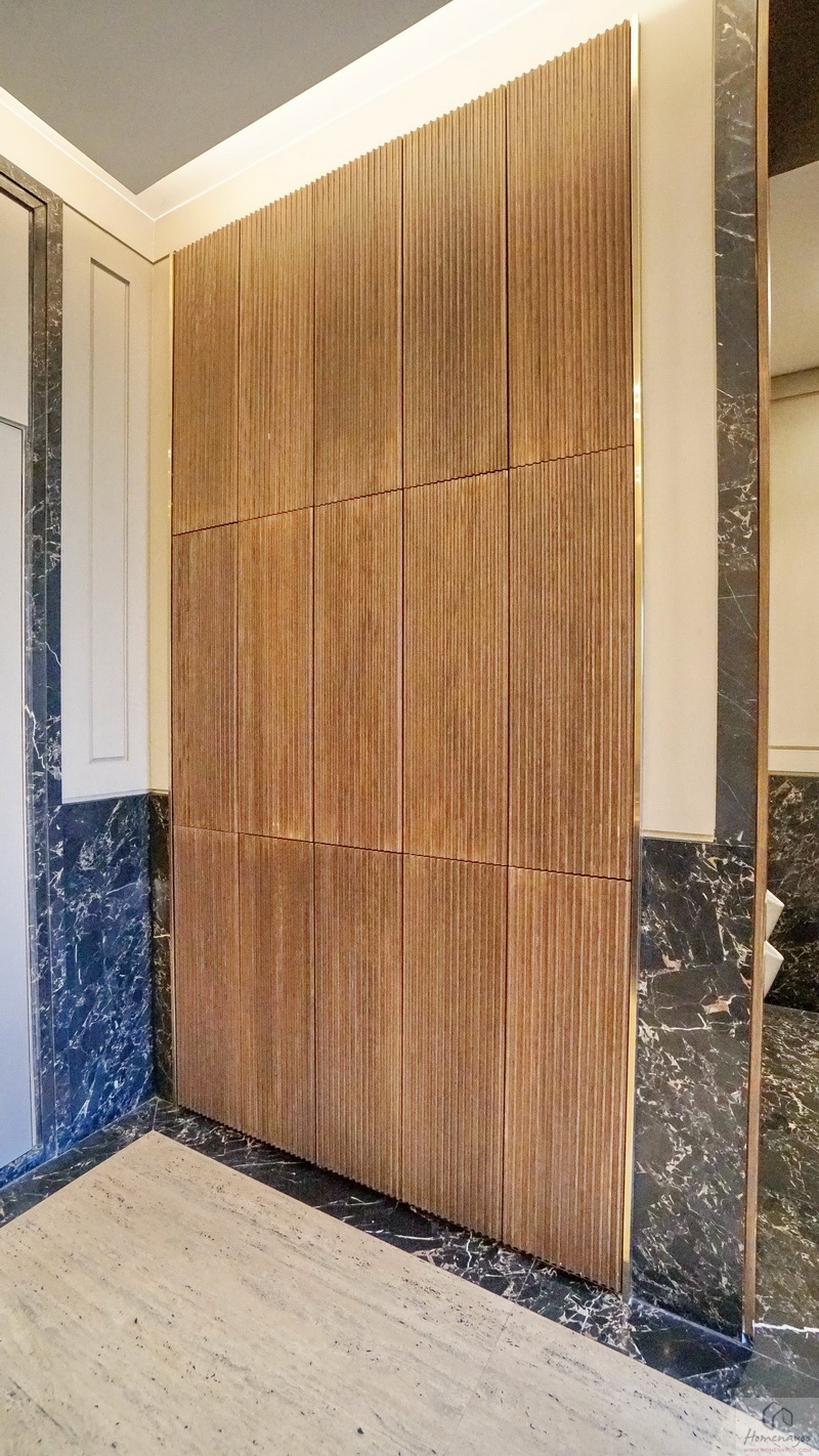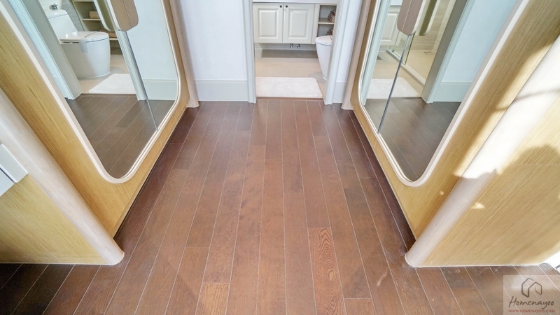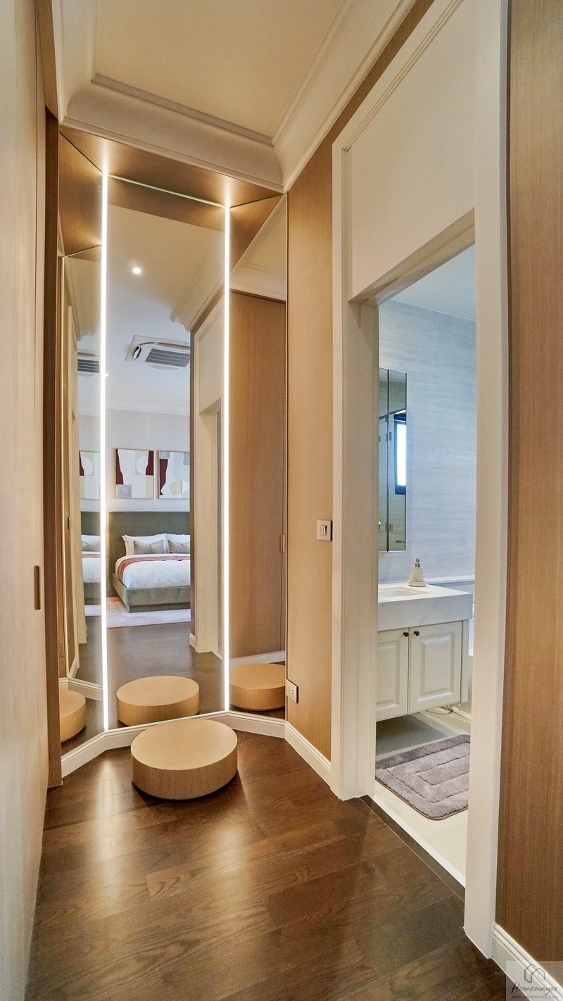 หน้าห้องน้ำชิดผนังทางซ้าย Built-in เป็นตู้เสื้อผ้าทรงสูงจรดเพดาน