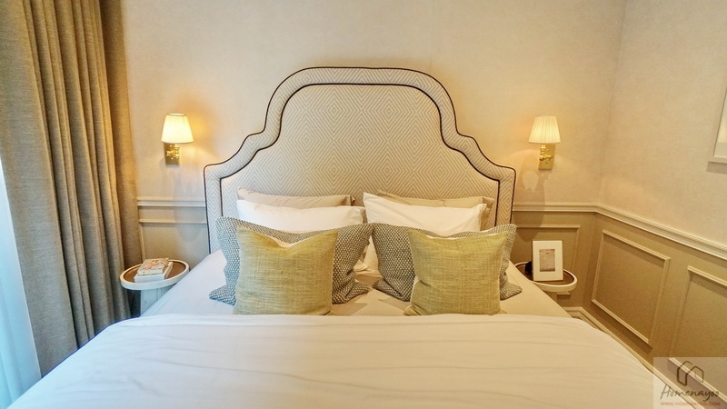 ฝั่งหัวเตียงวางโต๊ะด้านข้างไว้ 2 ฝั่ง ให้ดูระยะการใช้งาน จะเห็นได้ว่าสามารถขึ้น-ลงหรือเปลี่ยนผ้าปูที่นอนได้สะดวก