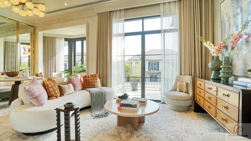 มาต่อกันที่ห้องพักผ่อนชั้นล่างพื้นที่ใช้งานกว้างขวาง ตัวห้องโอบล้อมไปด้วยหน้าต่างบานผสมขนาดใหญ่ ฝั่งหน้าบ้านมีลักษณะแบบ Bay Window เพิ่มมุมใช้งานให้มีความสวยงามยิ่งขึ้น จัดวางชุดโซฟานั่งเล่นพักผ่อนขนาดใหญ่หรือโต๊ะขนาดหลายที่นั่งได้ลงตัว ใช้เป็นพื้นที่ต้อนรับแขกที่มีความเป็นส่วนตัวได้เลย