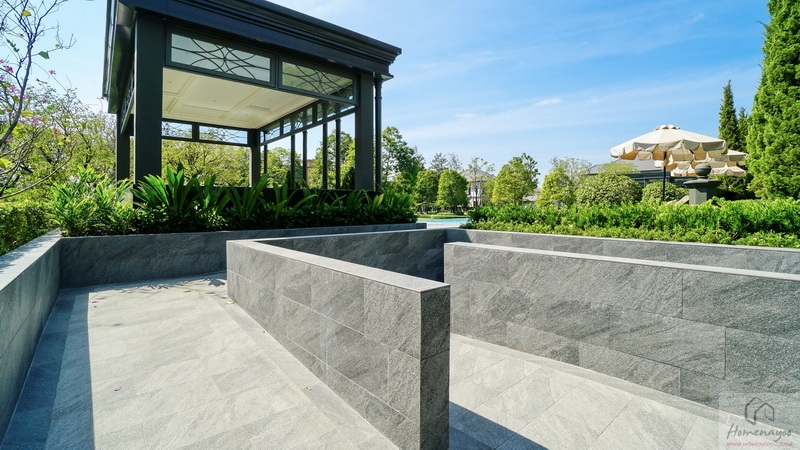 ⇒ การออกแบบโครงการ, แบบบ้าน และวัสดุ : โครงการมีให้เลือกเฉพาะบ้านเดี่ยวระดับ Luxury เอกสิทธิ์เพียง 56 ครอบครัว บรรยากาศโดยรวมเงียบสงบ ไม่แออัด และมีความเป็นส่วนตัวสูง เหมาะกับการอยู่อาศัยระยะยาวของครอบครัวขนาดใหญ่ ออกแบบมาสไตล์อันเป็นเอกลักษณ์ของ Renaissance Revaval