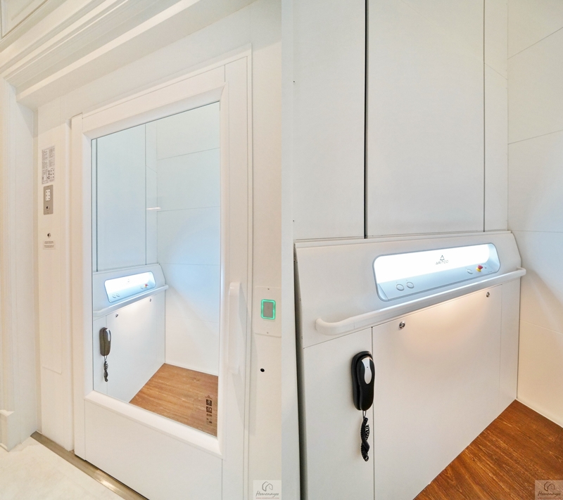 เป็นลิฟต์โดยสารจากแบรนด์ Aritco นำเข้าจากสวีเดน ประตูทางเข้าบานเปิดกระจกใส มือจับแนวยาวใช้งานสะดวก