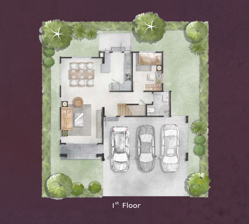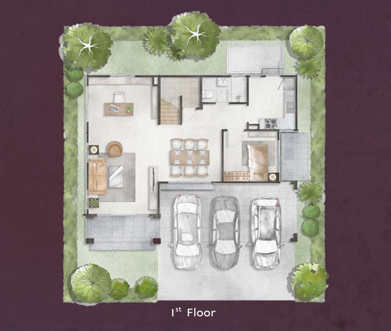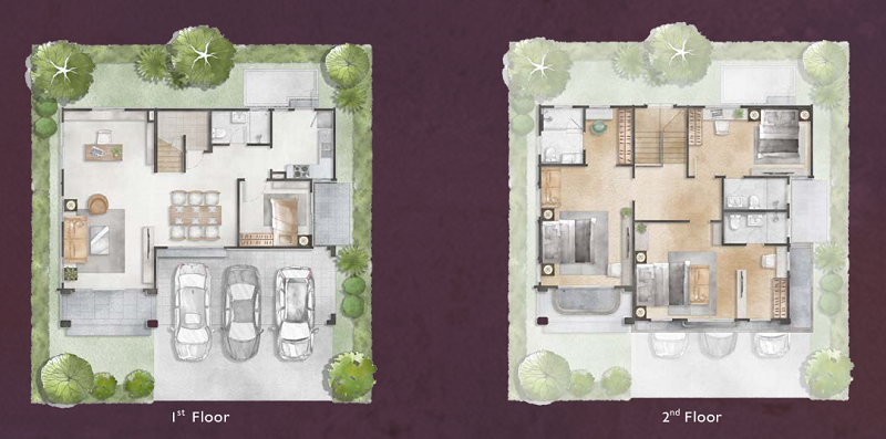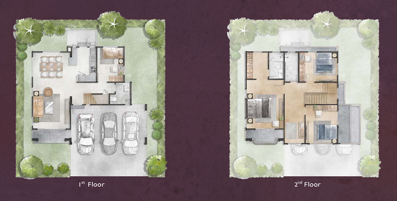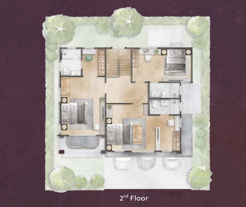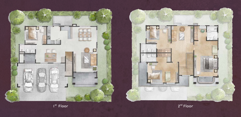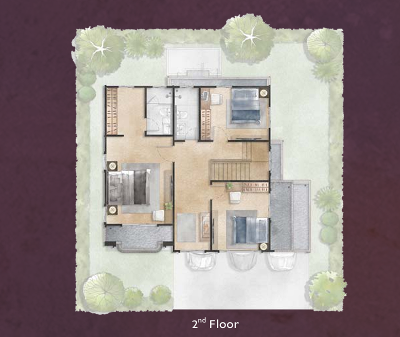 🔸 แบบบ้าน HERA พื้นที่ใช้สอย 268 ตร.ม. ฟังก์ชัน 4 ห้องนอน, 4 ห้องน้ำ, 3 ที่จอดรถ