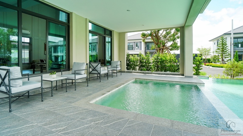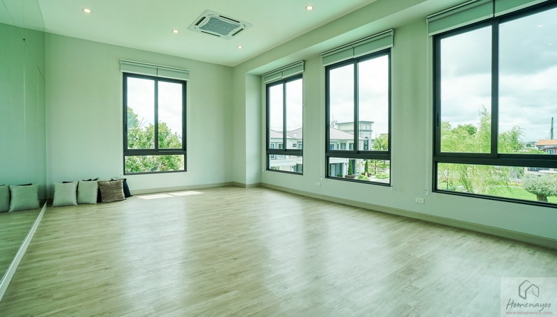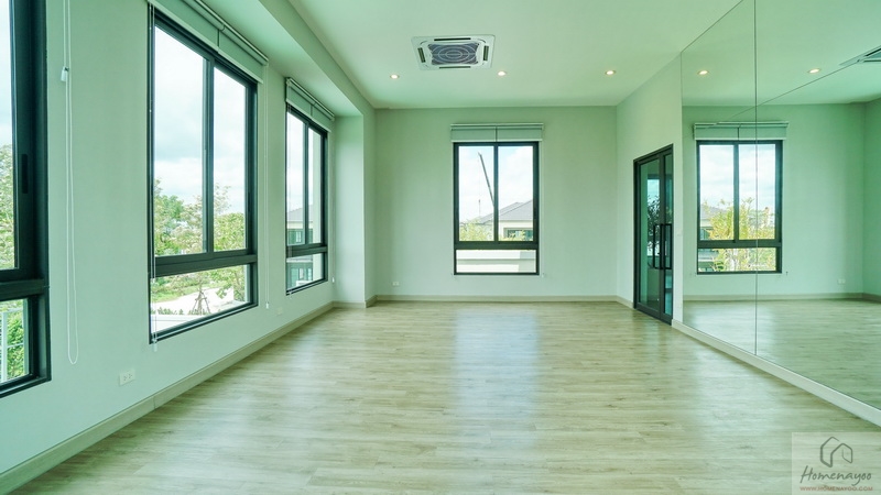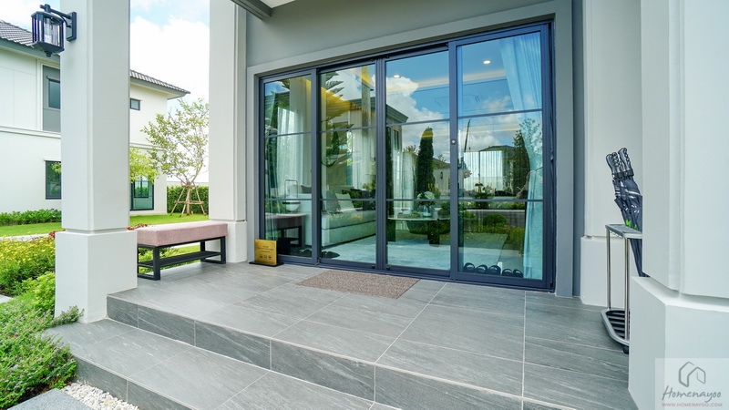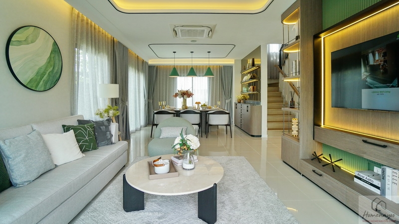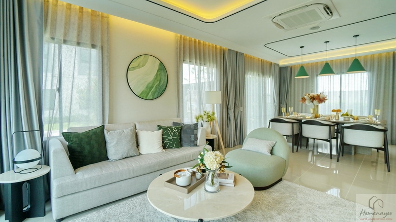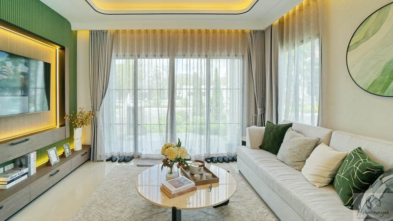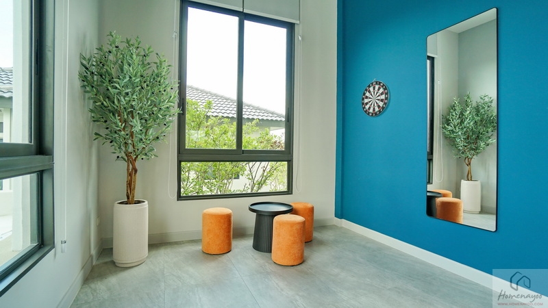 ออกแบบ Biophilic Design เชื่อมโยงทุกชีวิตในบ้านกับพื้นที่สีเขียวได้ใกล้ชิดธรรมชาติ, ติดตั้งระบบสัญญาณกันขโมย Magnetic Sensor และ IP Camera, ห้องเก็บของขนาดใหญ่แยกเป็นสัดส่วน, ห้องน้ำกว้างใช้สุขภัณฑ์แบรนด์ชั้นนำ, ชั้นล่างปูพื้นแกรนิตโต้ขนาด 60 x 60 ซม., ชั้นบนพื้น SPC, ฝ้าชั้นล่าง-บนอยู่ที่ 2.6 ม. เป็นต้น