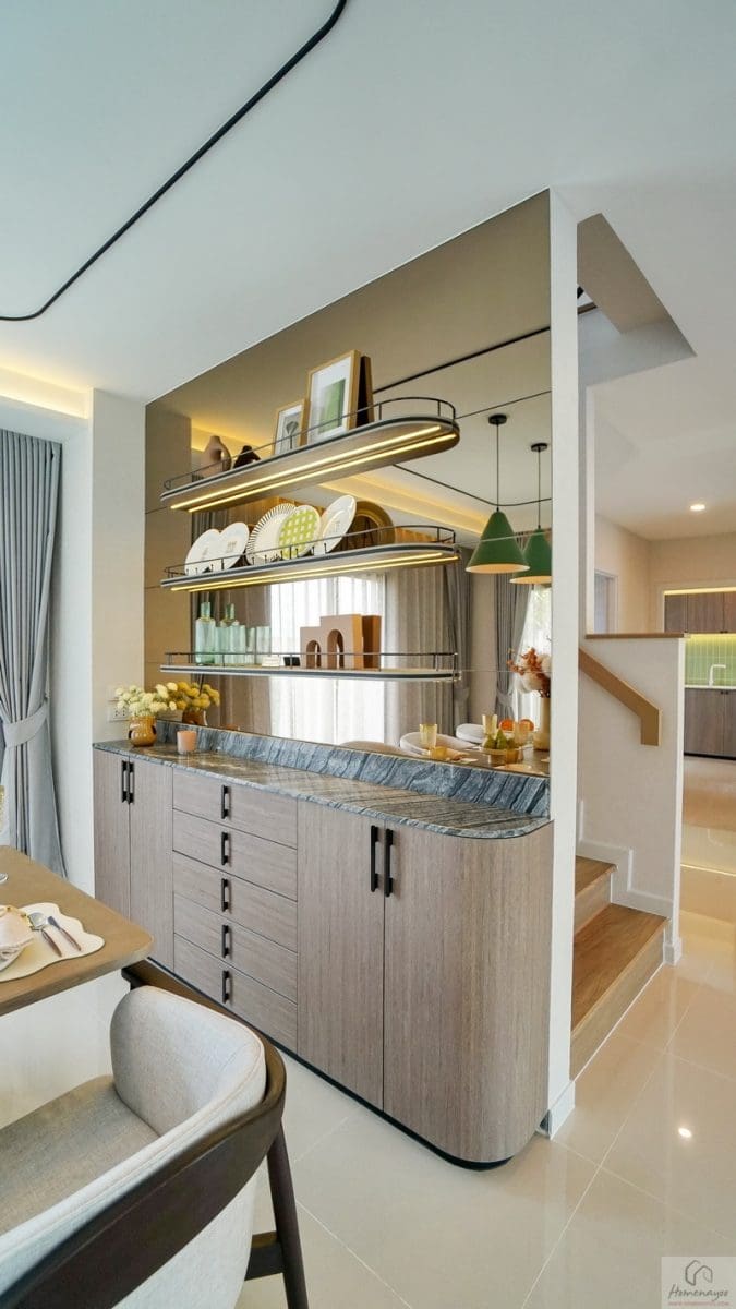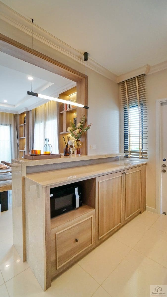 ด้านข้าง Built-in เคาน์เตอร์จัดเป็นมุม Pantry วางเครื่องดื่ม, ชา-กาแฟ, Cocktail, ขนมต่าง ๆ