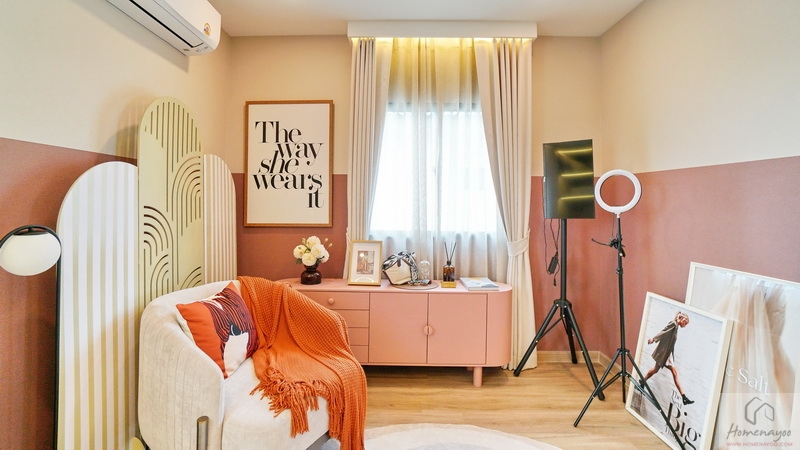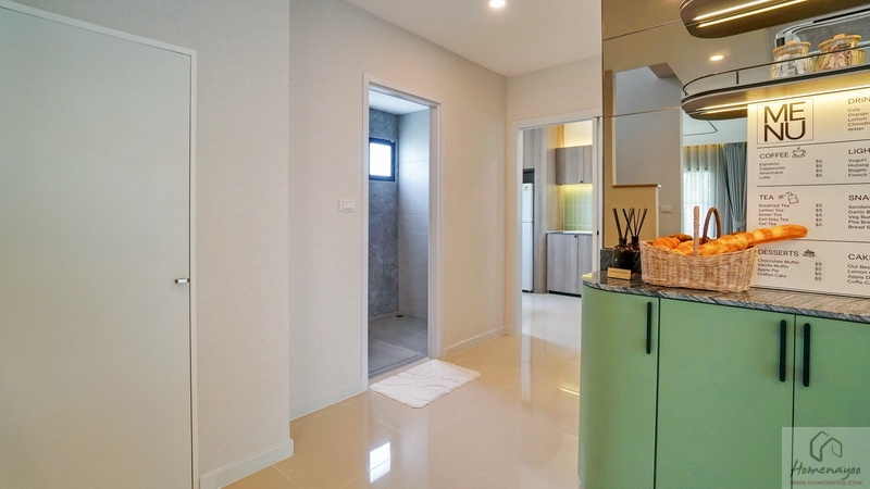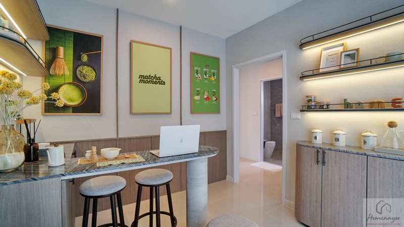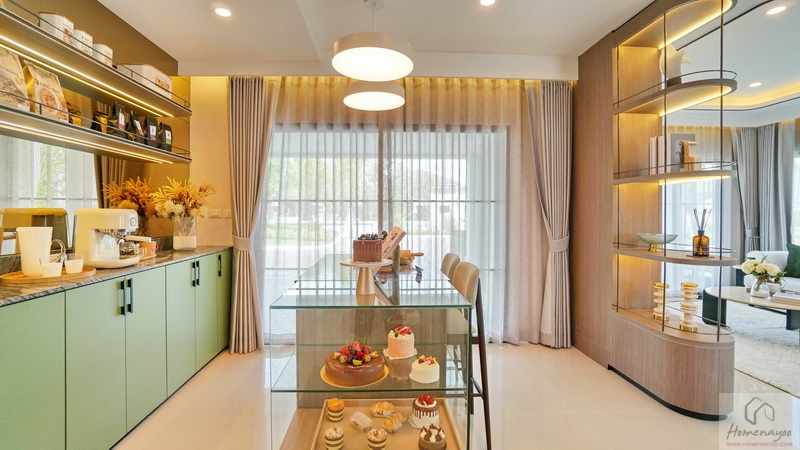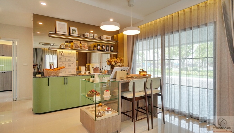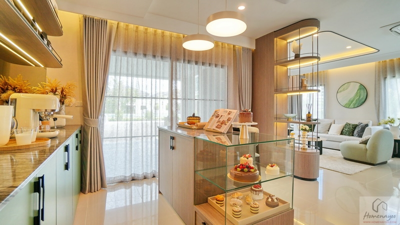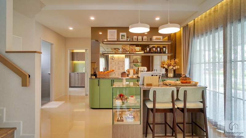 ถัดมาอีกฝั่งของตัวบ้านจะมี Free Space ให้จัดเป็นพื้นที่อเนกประสงค์ปรับฟังก์ชันการใช้งานได้ตามใจชอบ ส่วนบ้านตัวอย่างจัดเป็นมุม Bakery น่ารัก ๆ