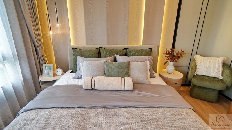 โซนพักผ่อนวางเตียงนอนขนาด King Size ได้สบาย ๆ มีที่เหลือให้วางเก้าอี้สตูลหรือม้านั่งปลายเตียงได้อีก