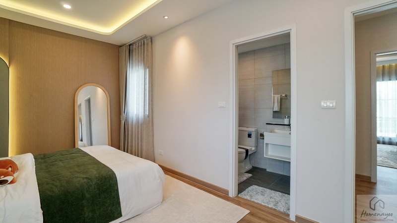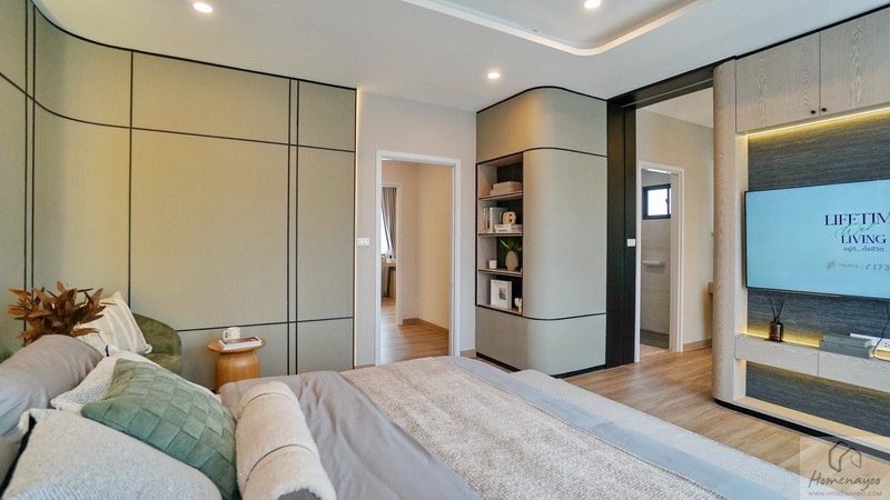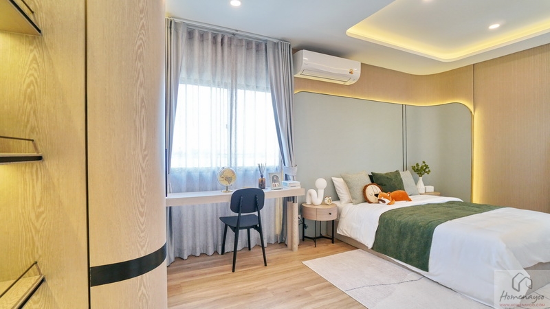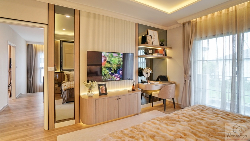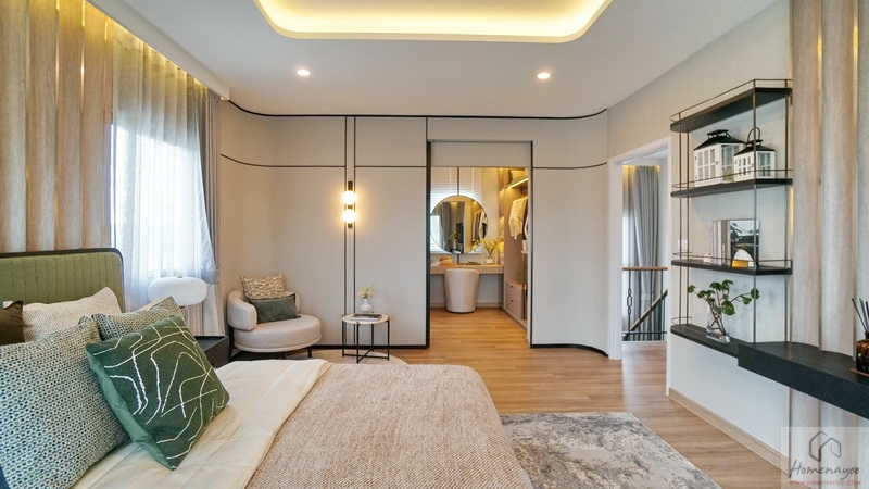 ในห้องขนาดกว้างขวางมีขนาดใหญ่รองลงมาจาก Master Bedroom เล็กน้อย เป็นห้องหน้ากว้างได้วิวฝั่งหน้าบ้านเช่นกัน วางเฟอร์นิเจอร์มาตรฐานต่าง ๆ ได้อย่างครบชุด แบ่งโซนการใช้งานไว้เป็น 2 ส่วน คือ โซนพักผ่อน และโซน Walk-in Closet กับห้องน้ำในตัว มีช่องแสงมาให้หลายจุด