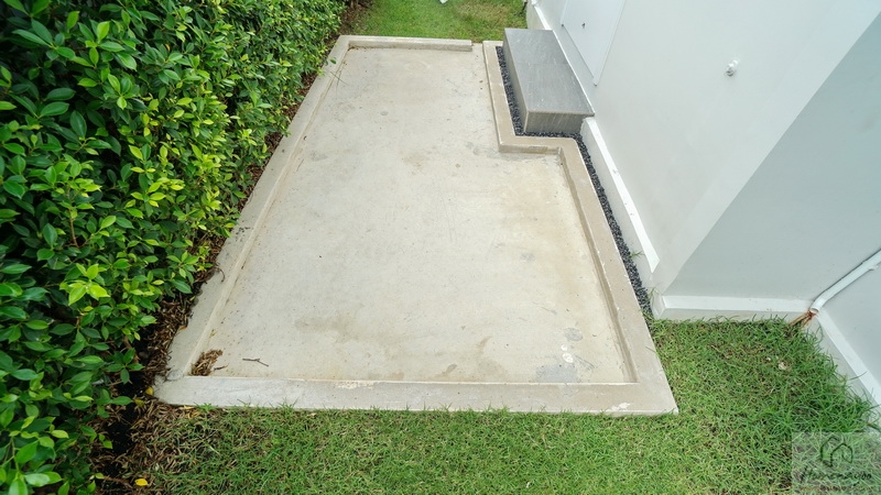 ส่วนซักล้างหลังบ้านเทพื้นคอนกรีตขัดเรียบพร้อมก่อธรณีแยกส่วนมาให้ ใช้ซักล้างหนัก ๆ ได้สบาย ๆ