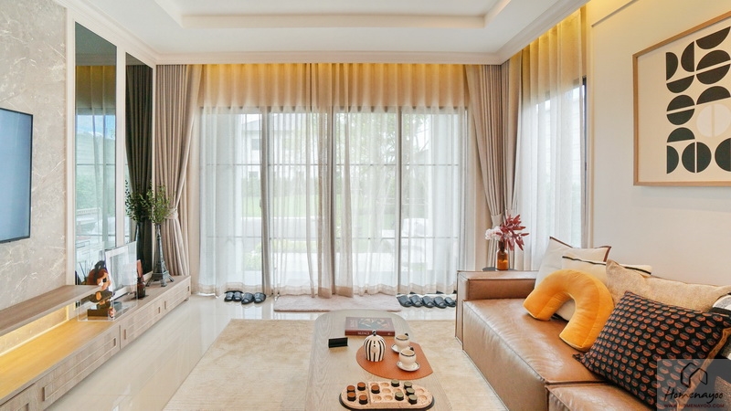 ⇒ การออกแบบโครงการ, แบบบ้าน และวัสดุ : ทั้งโครงการมีเฉพาะบ้านเดี่ยวพรีเมียมหลังใหญ่ 2 ชั้น สไตล์ Neo Classic บนที่ดินขนาดประมาณ 24 ไร่ จำนวนยูนิตน้อยเพียง 90 หลัง ที่ดินเริ่มต้น 50 ตร.ว. พื้นที่ใช้สอย 223-268 ตร.ม. รับแรงบันดาลใจในการออกแบบมาจากงานศิลปะ Wes Anderson ทำให้บ้านมีเอกลักษณ์เฉพาะตัว ทั้งโทนสี การจัดวาง และจังหวะของพื้นที่