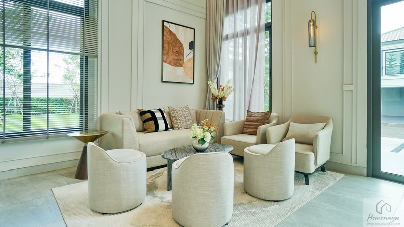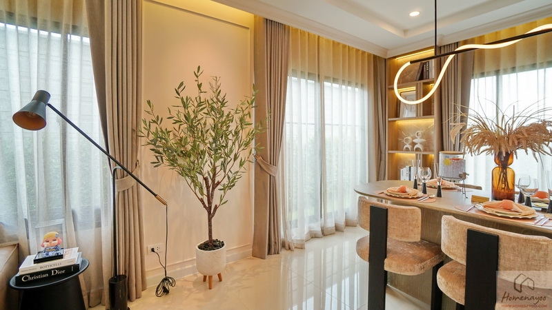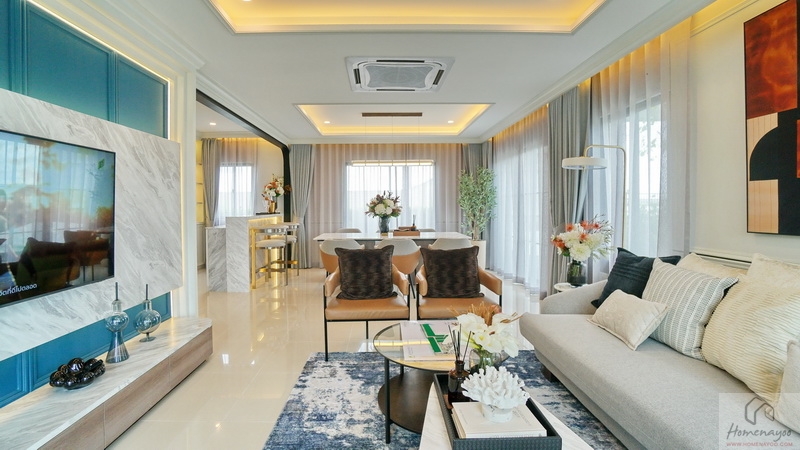 ทุกมุมของบ้านมีความกลมกลืนระหว่างความ Classic และ Modern โครงสร้างบ้าน Precast ผนังแข็งแกร่ง กันไฟ กันเสียงได้ดีขึ้น ทนทานต่อทุกสภาพแวดล้อม ฟังก์ชันใหญ่ 4 ห้องนอน Double Master Bedroom พร้อมห้องอเนกประสงค์ที่สามารถปรับเปลี่ยนได้ตามความต้องการ และที่จอดรถ 3 คันทุกหลัง
