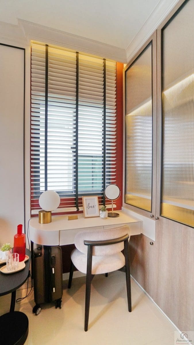 ใกล้กันจัดเป็นมุมโต๊ะเครื่องแป้งขนาดมาตรฐาน จุดนี้มีช่องแสงเพิ่มให้อีก 1 บาน