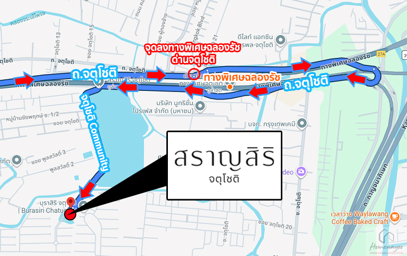 ⇒ การเดินทางโดยรถส่วนตัว : ทำเลศักยภาพเดินทางง่ายสะดวกสบายใกล้จุดขึ้น-ลงทางพิเศษฉลองรัช (ด่านจตุโชติ) ใช้เดินทางเข้าเมืองไปฝั่งรามอินทรา, ลาดพร้าว, บางกะปิ, รามคำแหง, พัฒนาการ, เอกมัย, ทองหล่อ, พระราม 9 เชื่อมทางพิเศษศรีรัชหรือทางพิเศษเฉลิมมหานครได้ง่าย ๆ เข้าสู่ตัวเมืองชั้นในไปโซนเพชรบุรี, อโศก, สุขุมวิท หรือย่าน CBD กรุงเทพฯ สะดวก