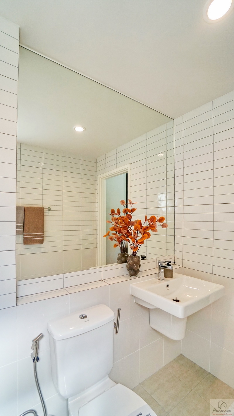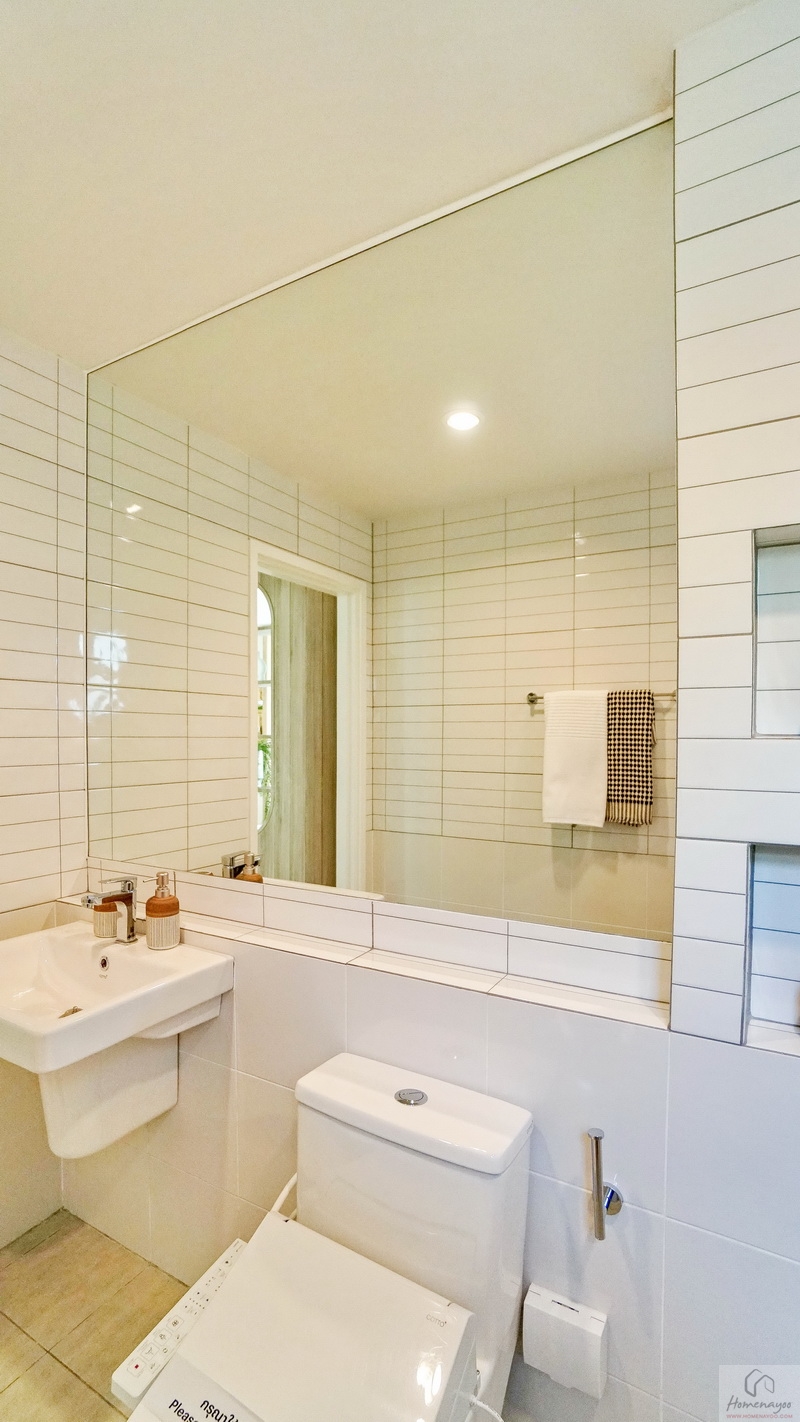 จัดฟังก์ชันครบครันมีทั้งมุมอ่างล้างหน้าพร้อมกระจกบนผนังขนาดใหญ่, มุมโถสุขภัณฑ์ 2 Piece ระบบ Dual Flush