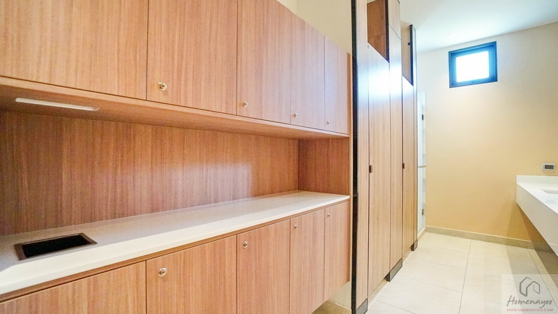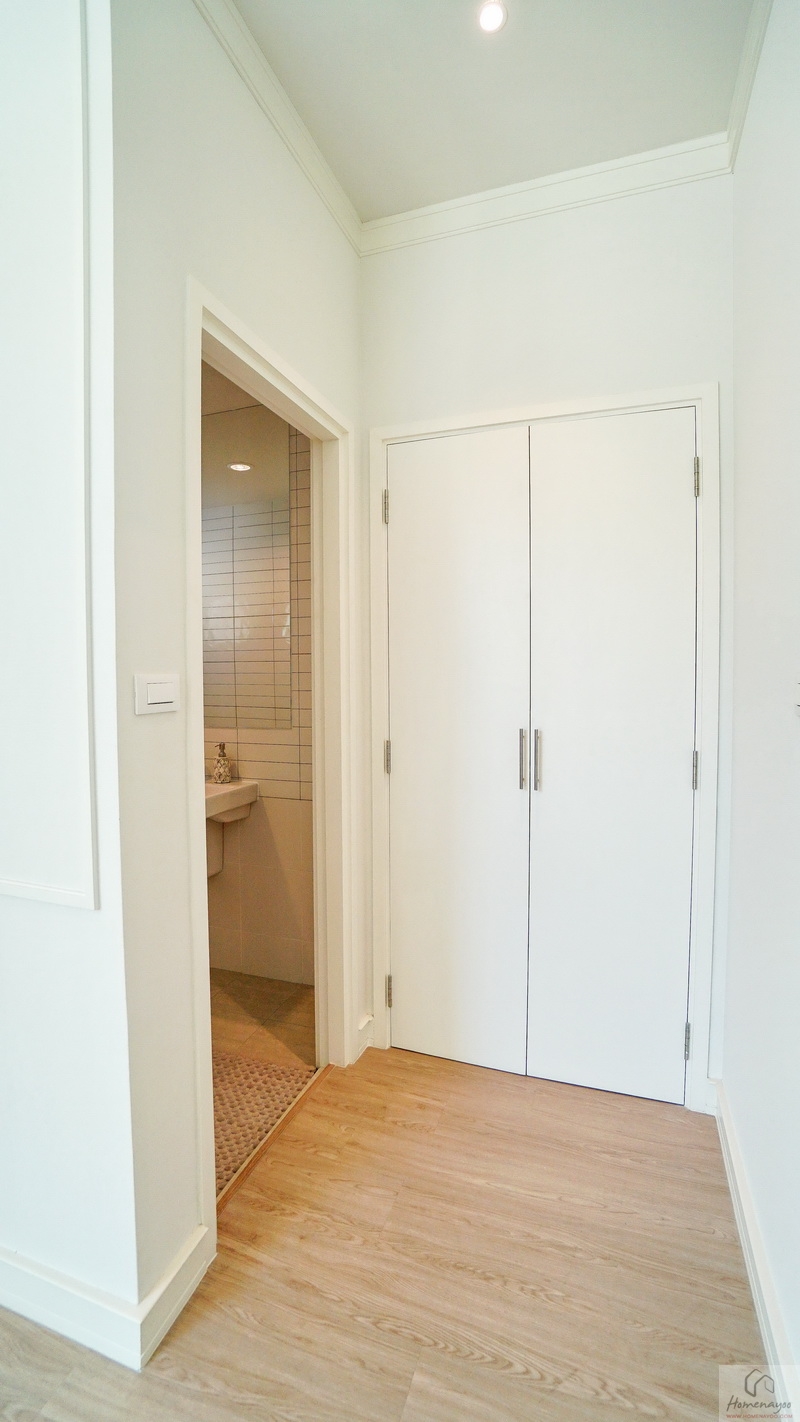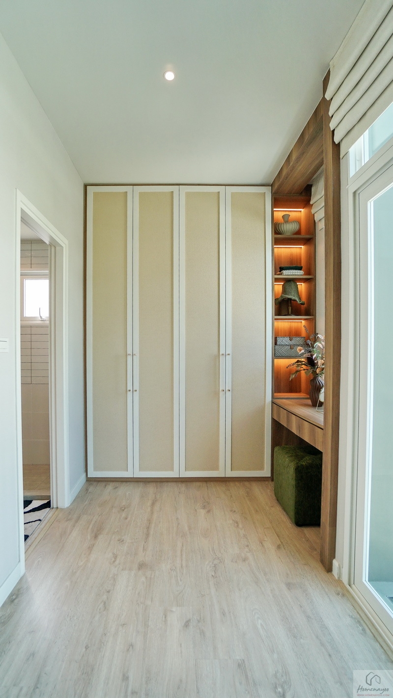 ผนังด้านข้าง Built-in ตู้เสื้อผ้าขนาดกลางได้กำลังดี หากจัดเป็นห้องนอนปกติก็สามารถจัด Walk-in Closet ขนาดใหญ่ได้เลย