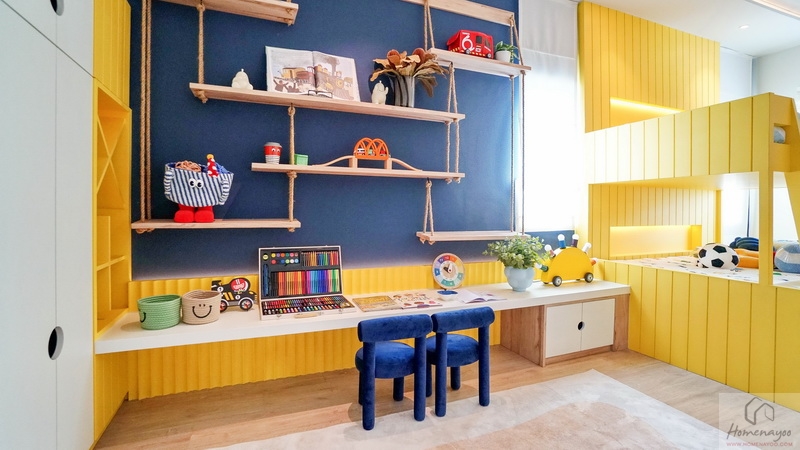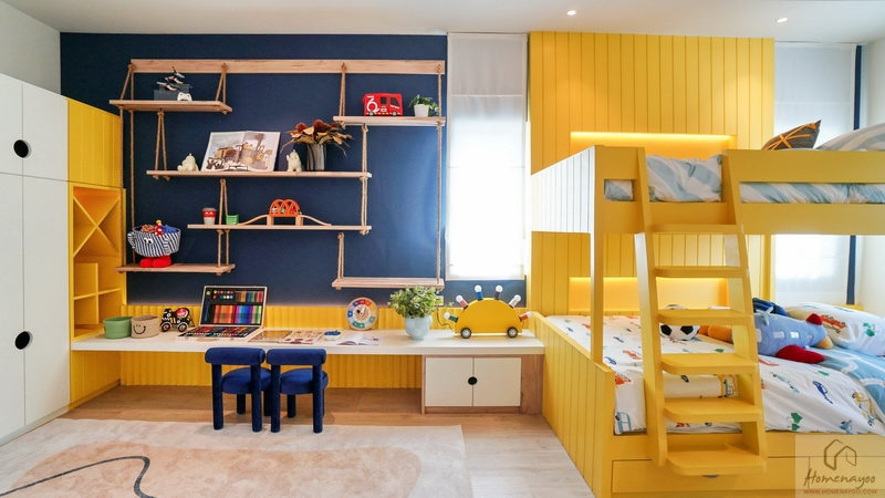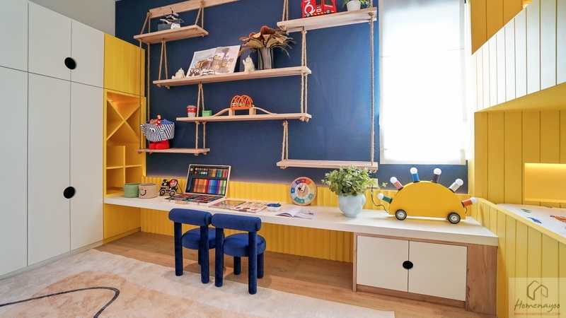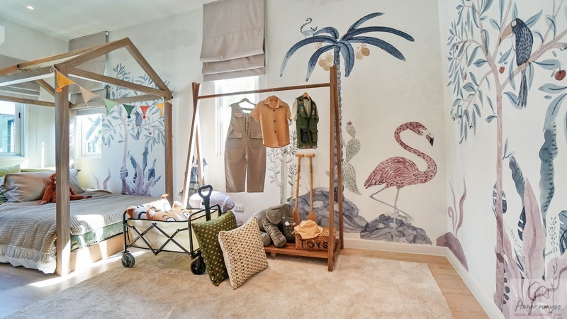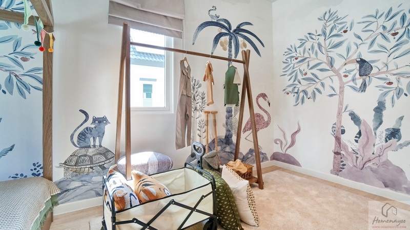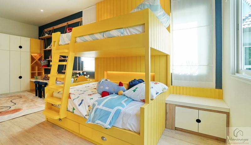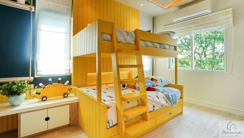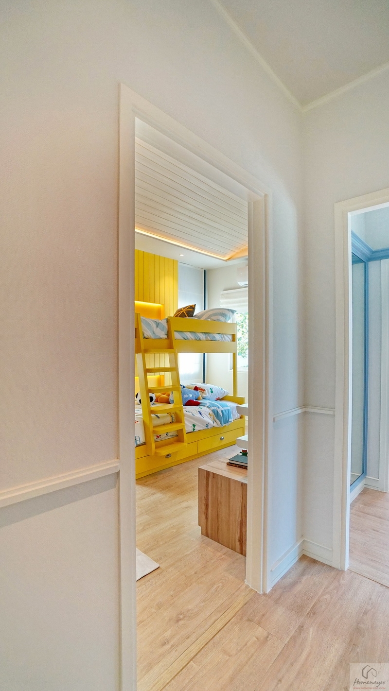 สำหรับบ้านตัวอย่างตกแต่งมาเป็นห้องนอนเด็กสีสันสดใสให้ดูเป็นไอเดีย ภายในขนาดกว้างจัดวางเฟอร์นิเจอร์มาตรฐานต่าง ๆ ได้ครบชุด มีหน้าต่างเป็นช่องรับแสงขนาด Oversize ให้หลายจุด สามารถรองรับการขยายของครอบครัวในอนาคต