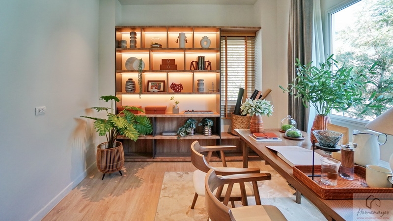 ถัดมาฝั่งติดกับห้องน้ำในตัวบ้านตัวอย่างจัดเป็นมุมโต๊ะอ่านหนังสือหรือทำการบ้านแนวยาวให้ดูเป็นไอเดีย