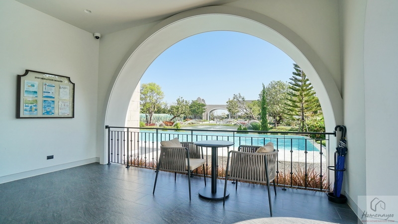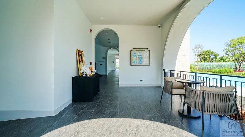 🏖️ ส่วนกลางครบครันสร้างเสร็จพร้อมใช้งาน เป็นพื้นที่ต้อนรับขนาดใหญ่สวยงามตำแหน่งตั้งอยู่ด้านหน้าโครงการยาวเข้าไปจนถึงโซนบ้านพักอาศัย มีทั้ง Clubhouse อาคาร 2 ชั้น ดีไซน์ Cape Dutch วิวทะเลสาบผืนน้ำกว้างขวางเพิ่มความสดชื่นผ่อนคลาย