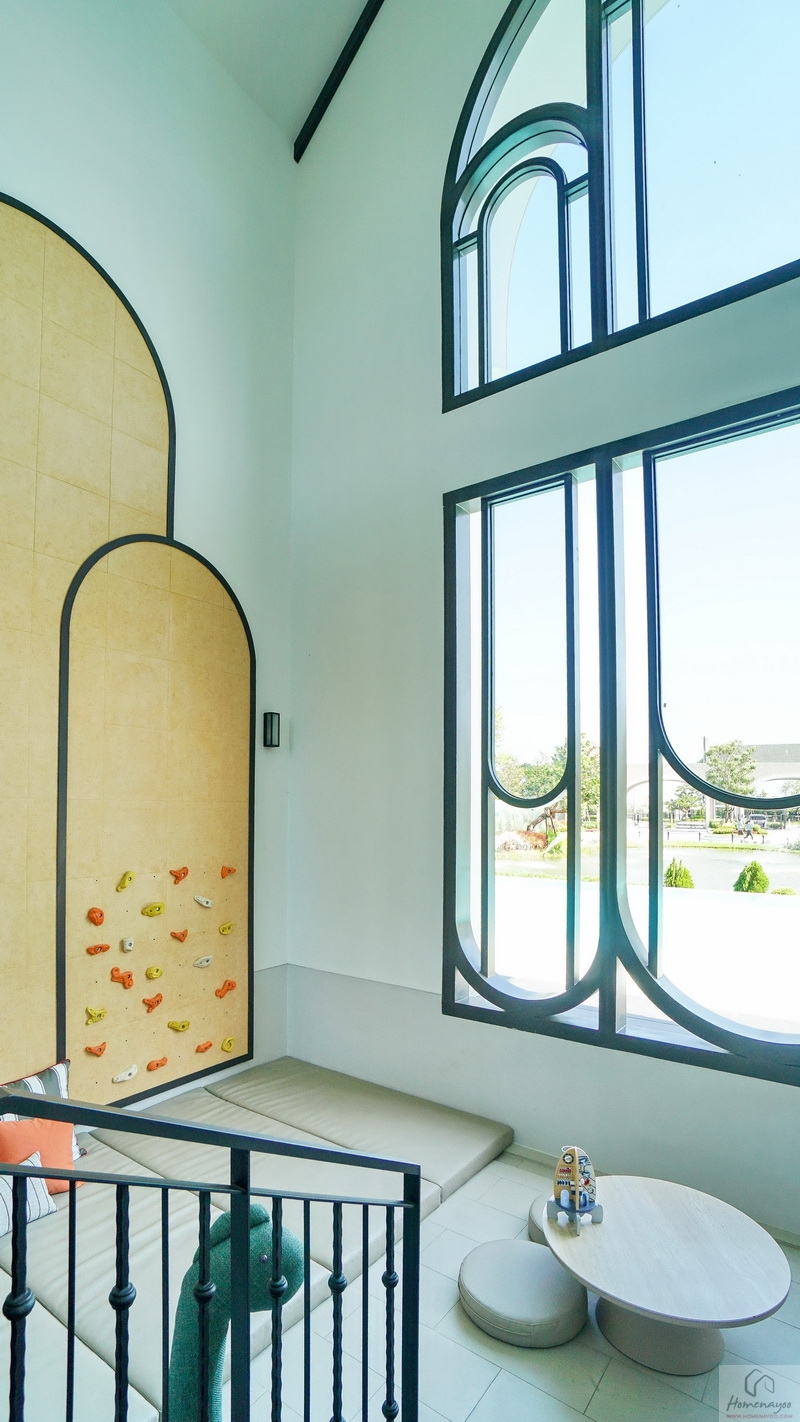 ในห้องค่อนข้างสว่างมีหน้าต่างกระจกบานเลื่อนผสมบานฟิกซ์ขนาด Oversize ใหญ่พิเศษให้ 1 ชุด และบานเลื่อนขนาดกว้างอีก 1 ชุด ช่วยรับแสงธรรมชาติจากภายนอกเข้ามาได้เยอะมาก