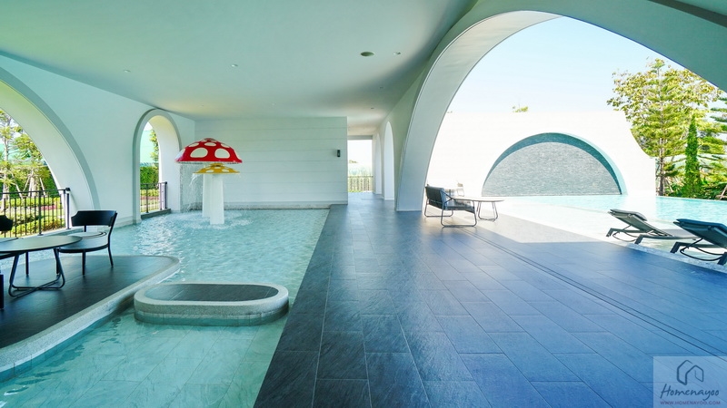 🏊 แบ่งฟังก์ชันไว้เป็นสัดส่วนมีทั้งสระว่ายน้ำกลางแจ้งระบบเกลือขนาด Half Olympic ดีไซน์แยกสระเด็ก-ผู้ใหญ่, Co-Working Space พื้นที่นั่งทำงานหรือพักผ่อน, Meeting Room ใช้ประชุมกลุ่มย่อย