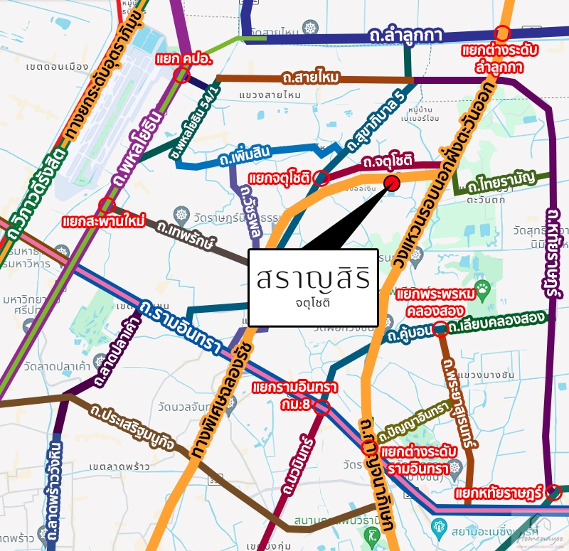 🚗 เชื่อมต่อถนนหลักหรือรองได้หลายเส้น เช่น ถนนคู่ขนานกาญจนาภิเษก, สุขาภิบาล 5, รามอินทรา, ลำลูกกา, คู้บอน, หทัยราษฎร์, สายไหม, วัชรพล, เทพรักษ์, พหลโยธิน เป็นต้น
