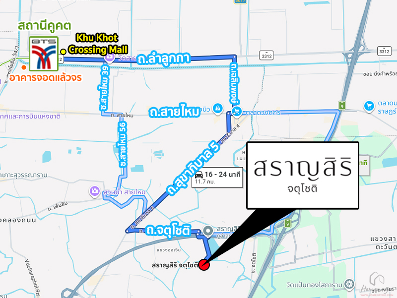 ⇒ การเดินทางโดยรถสาธารณะ : แม้ว่าจะเป็นทำเลที่สะดวกกับลูกบ้านที่ใช้รถยนต์ส่วนตัวมากกว่า แต่ตัวโครงการตั้งอยู่ใกล้แนวรถไฟฟ้าสายสีเขียว (ช่วงหมอชิต-สะพานใหม่-คูคต) สถานีคูคต, สถานีสายหยุด และส่วนต่อขยายในอนาคต นั่งยาวไปที่ห้าแยกลาดพร้าวเพื่อ Interchange ไปรถไฟฟ้าใต้ดิน MRT สายสีน้ำเงินได้เลย