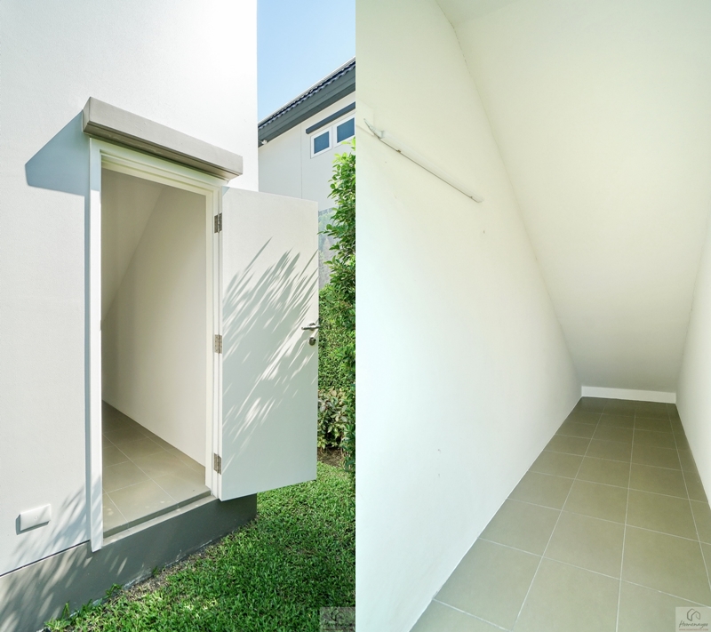 พร้อมห้องเก็บของขนาดใหญ่ประตูบานเปิดคู่ 2 จุด ด้านในใช้เก็บของต่าง ๆ ได้เยอะ เช่น อุปกรณ์ทำความสะอาด, อุปกรณ์ทำสวน, สายยาง, ถุงกอล์ฟ เป็นต้น