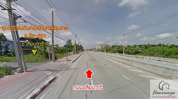 จากนั้นวิ่งตรงตาม ถนนเลียบวารี ผ่านซ้ายมือ ชุมชนแผ่นดินทองบ้านกระทุ่มราย ซ.อัล-ฮุดา (ซ.เลียบวารี 7)