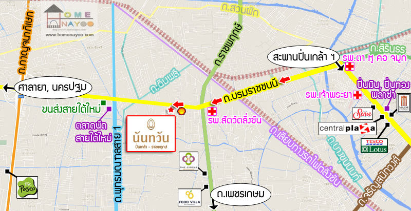 การเดินทาง เริ่มจาก ถ.บรมราชชนนี > บ้านนันทวัน ปิ่นเกล้า – ราชพฤกษ์ *ติดซ.บรมราชชนนี 73 ใกล้ปั๊มเชลล์