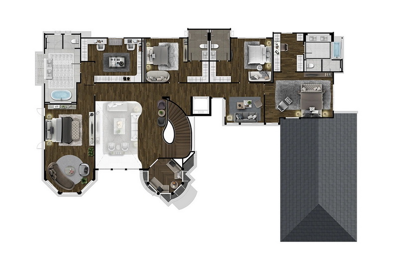 จำนวนห้อง | 4-5 ห้องนอน, 5-6 ห้องน้ำ, 1-2 ห้องพักผ่อน, 1-2 ห้องแม่บ้าน |