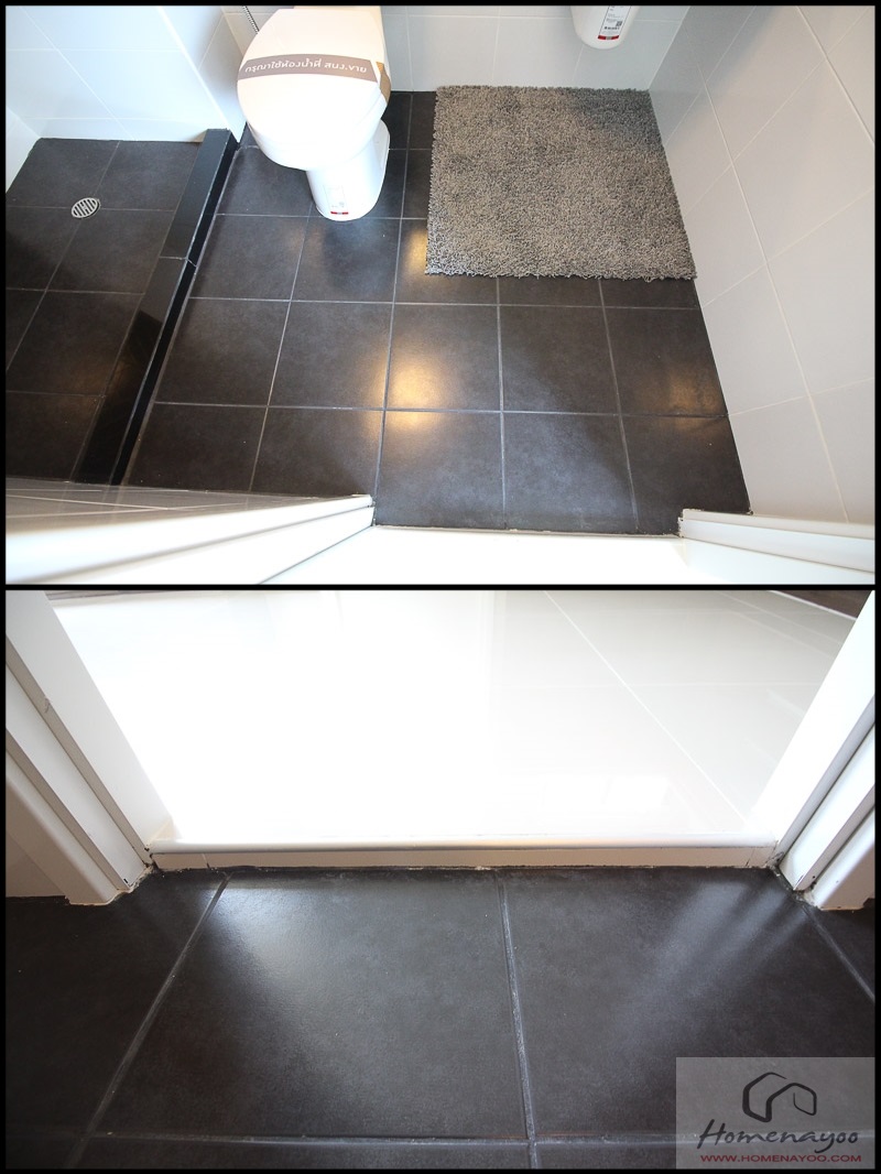 แต่ผังของห้องน้ำห้องนี้จะแตกต่าง บริเวณโถสุขภัณฑ์ มี Low wall ยื่นออกมา ซึ่งสามารถวางสิ่งของขนาดเล็กหรืออุปกรณ์ภายในห้องน้ำได้