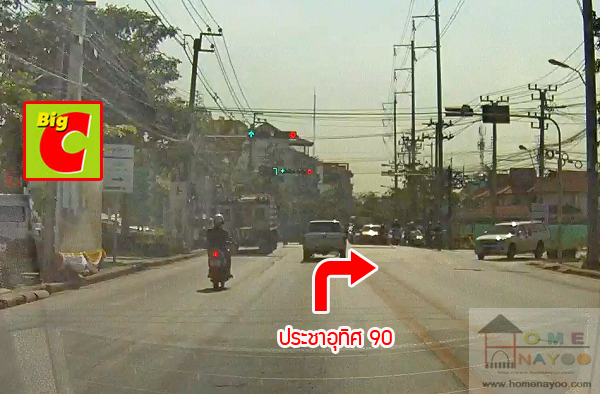 กราฟิกเพิ่มเติมบริเวณประชาอุทิศ 90 โดยทางเข้าซอยจะมีจุดสังเกตคือ Big C ประชาอุทิศที่อยู่ตรงข้าม