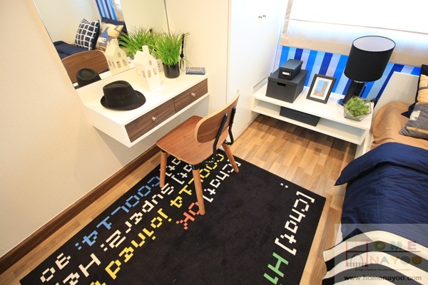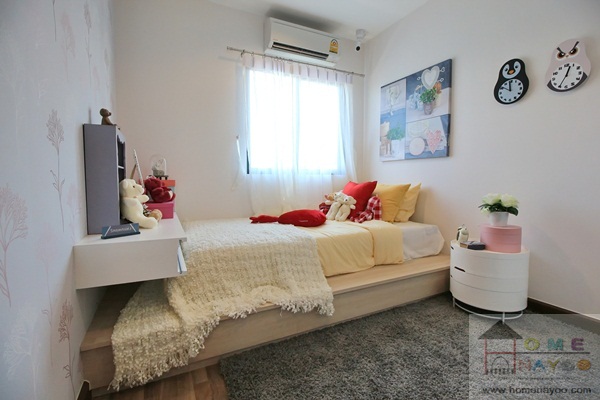 ห้องนอนรองอีกห้องขนาดเล็กลงมา วางเตียง 3 ฟุตเข้ามุม