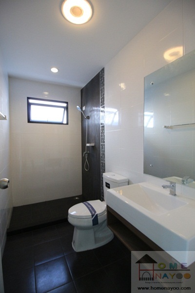 ห้องน้ำชั้นบน สำหรับไฟในห้องน้ำจะเป็นแบบโคมไฟโดนัทมีพัดลมดูดอากาศในตัว