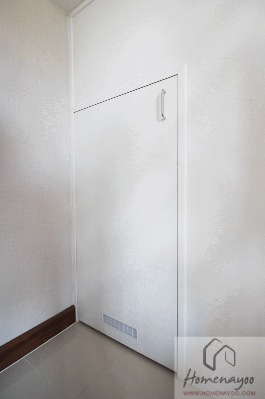 ประตูห้องเก็บของเป็นบานเปิดสีขาว