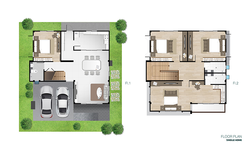 แปลนบ้านชั้น 1 | แปลนบ้านชั้น 2