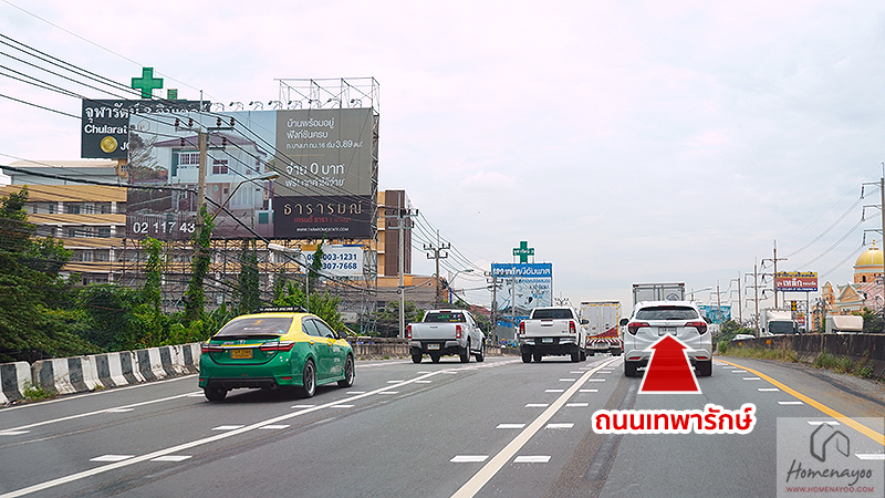 เลี้ยวซ้ายมาเข้าถนนเทพารักษ์ ขับตรงไปอีก