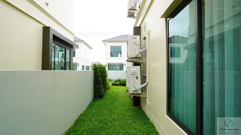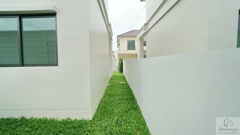 ข้างบ้านอีกฝั่งมีพื้นที่ให้เดินเชื่อมต่อได้ ซ้ายมือเป็นส่วนซักล้างในร่ม