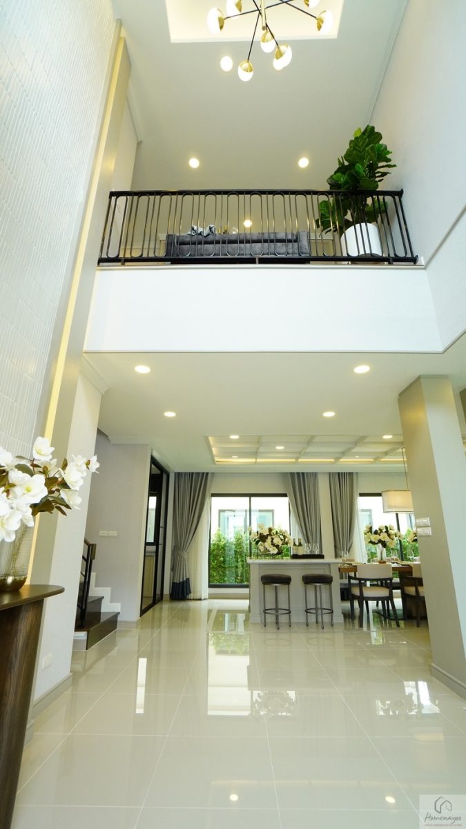 ฝ้าเพดานส่วนนี้จะได้แบบ Double Volume สูงถึงชั้น 2 และยังมีช่องแสงขนาดใหญ่ ทำให้บ้านดูโปร่ง โล่งมากขึ้น ส่วนนี้สามารถติด Chandelier สวย ๆ ได้ตามต้องการ ช่วยเพิ่มความหรูให้กับบ้าน