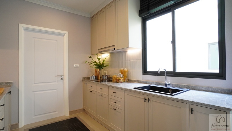 จากส่วนครัวจะมีประตูเปิดเชื่อมออกไปยังส่วนซักล้างหลังบ้านได้