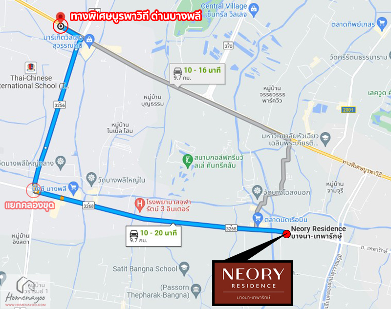 ถนนบางนา-ตราด > ถนนกิ่งแก้ว > ถนนเทพารักษ์ > NEORY RESIDENCE บางนา-เทพารักษ์