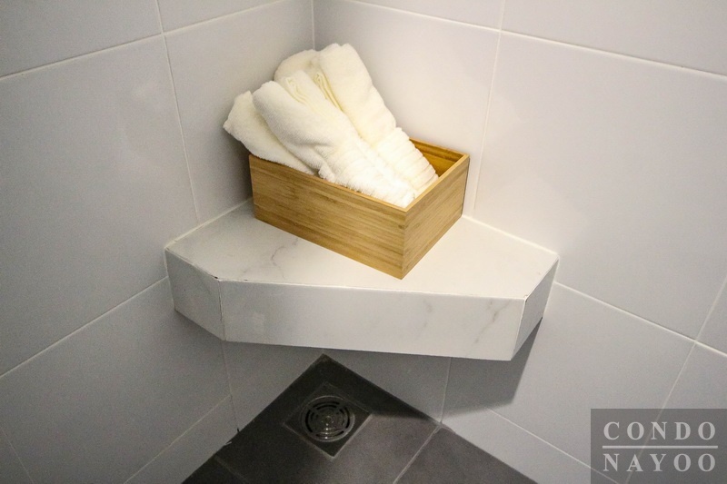 ห้องน้ำแยกส่วนแห้ง ส่วนอาบน้ำให้ สุขภัณฑ์ห้องน้ำทั้งหมดเป็นของ Cotto และ Prema พร้อมติดตั้งเครื่องปรับอากาศ York ขนาด 9,000 BTU ให้ยูนิตละ 1 เครื่อง ราคาเริ่มต้น 1.5 ล้านบาท (ส.ค.61)