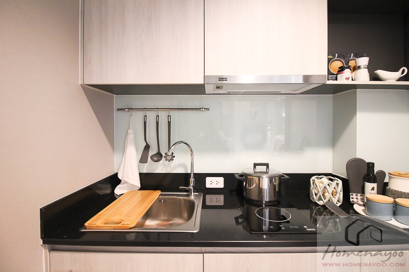และนี่ก็คือหน้าตาเคาน์เตอร์ครัวที่เราจะได้มากับห้องค่ะ ได้มาทั้งอ่างล้างจานทั้ง Hob+Hood