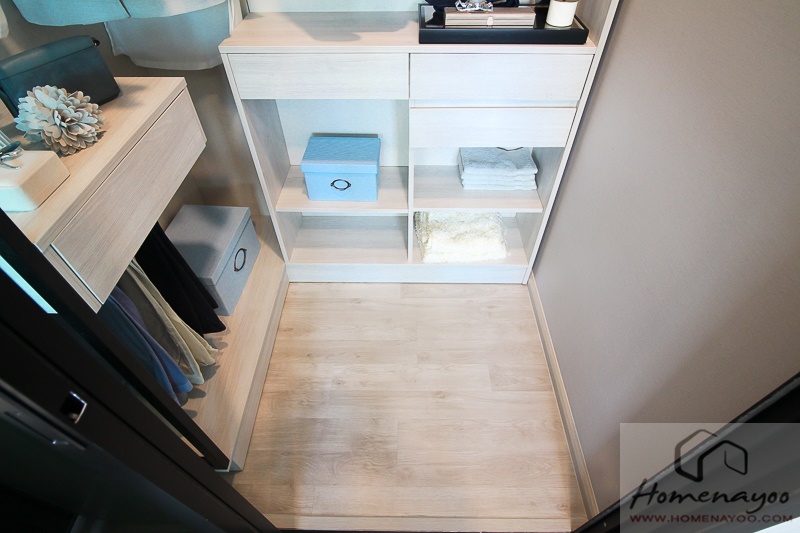 ภายใน Walk – in Closet ที่ทางโครงการทำ Built – in มาให้ มีราวสำหรับแขวนเสื้อผ้าและชั้นเก็บของมากมาย