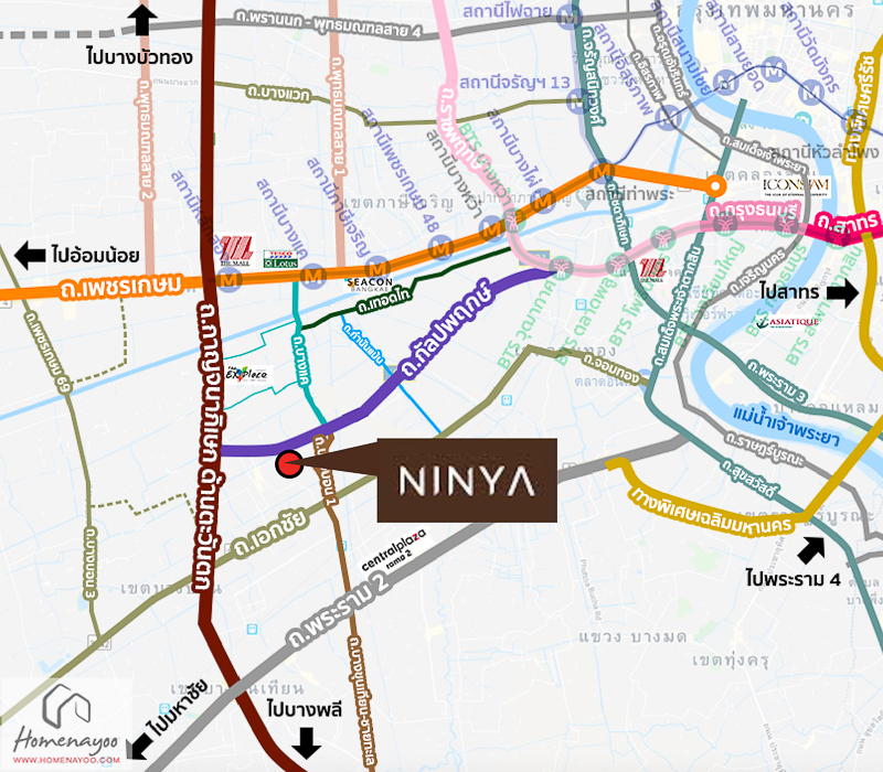 ทำเลที่ตั้ง โครงการ NINYA กัลปพฤกษ์ ตั้งอยู่ติดถนนกัลปพฤกษ์ ฝั่งมุ่งหน้าไปทางถนนกาญจนาภิเษก ถนนกัลปพฤกษ์เป็นเส้นที่ตัดเริ่มจากถนนราชพฤกษ์ ยาวมาตัดผ่านถนนกำนันแม้น ผ่านถนนบางแคและถนนบางบอน 1 จากนั้นยาวไปสิ้นสุดที่ถนนกาญจนาภิเษก การเดินทางเข้าออกเมืองค่อนข้างสะดวก มีถนนสำคัญต่างๆเชื่อมไปออกได้หลายโซน