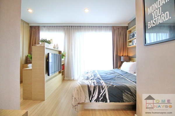 เดินเข้ามาด้านใน แบ่งเป็นสองฟังก์ชั่นคือ ขวามือวางเตียงนอน ทางซ้ายมือ จัดเป็น Walk in Closet