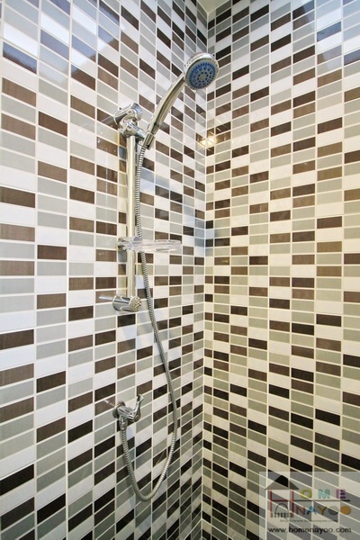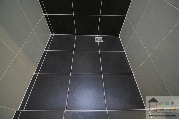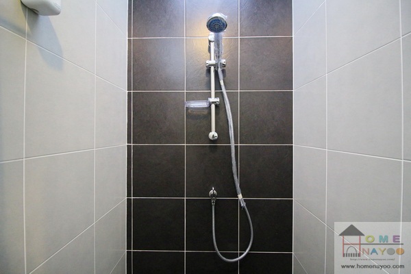 ส่วนด้านในสุด เป็นพื้นที่ส่วนอาบน้ำ ขนาด 0.9 x 1.1 เมตร ขนาดกว้างกำลังดี ลดพื้นต่างระดับลง 3 ซม. กันน้ำออก หากใครที่ต้องการความเป็นสัดส่วนมากขึ้น จะติดเป็นผ้าม่านกันน้ำ หรือ ติด Shower Box เพิ่มเติมเข้าไปก็สามารถทำได้
