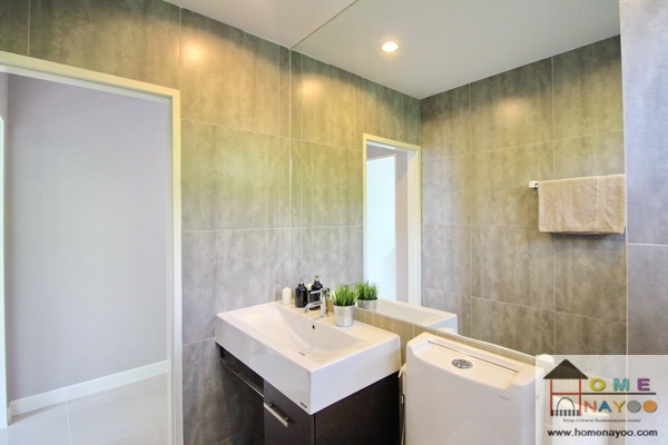 โดยพื้นที่หลังบ้าน จะมีห้องเก็บของ พร้อมกับห้องน้ำแม่บ้าน สุขภัณฑ์ครบครันค่ะ